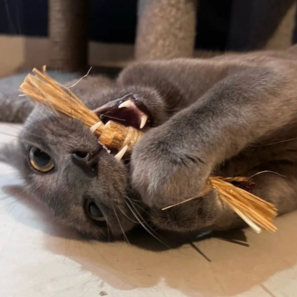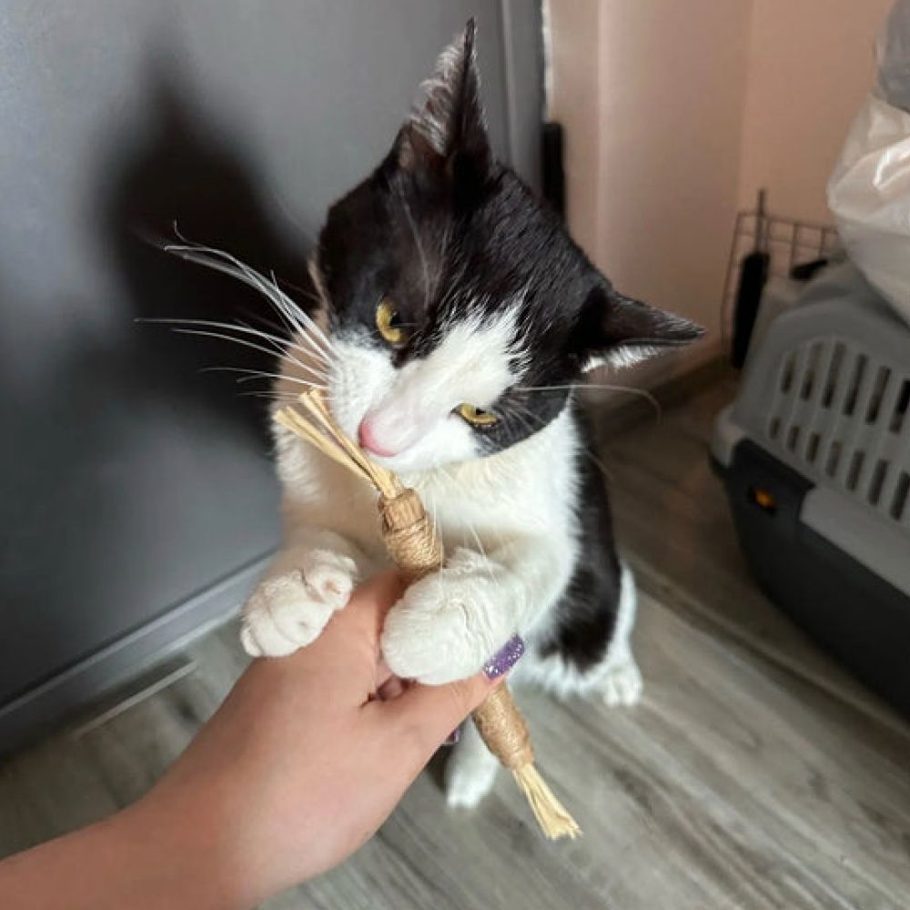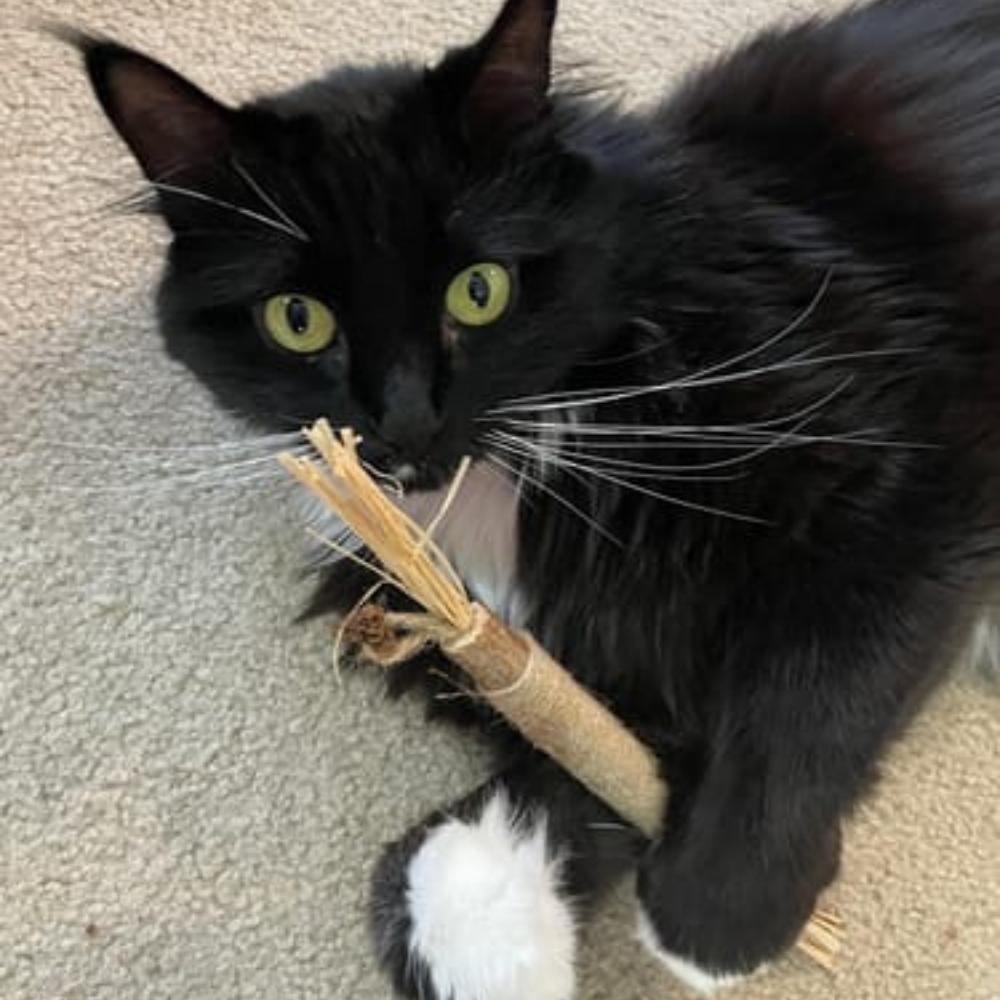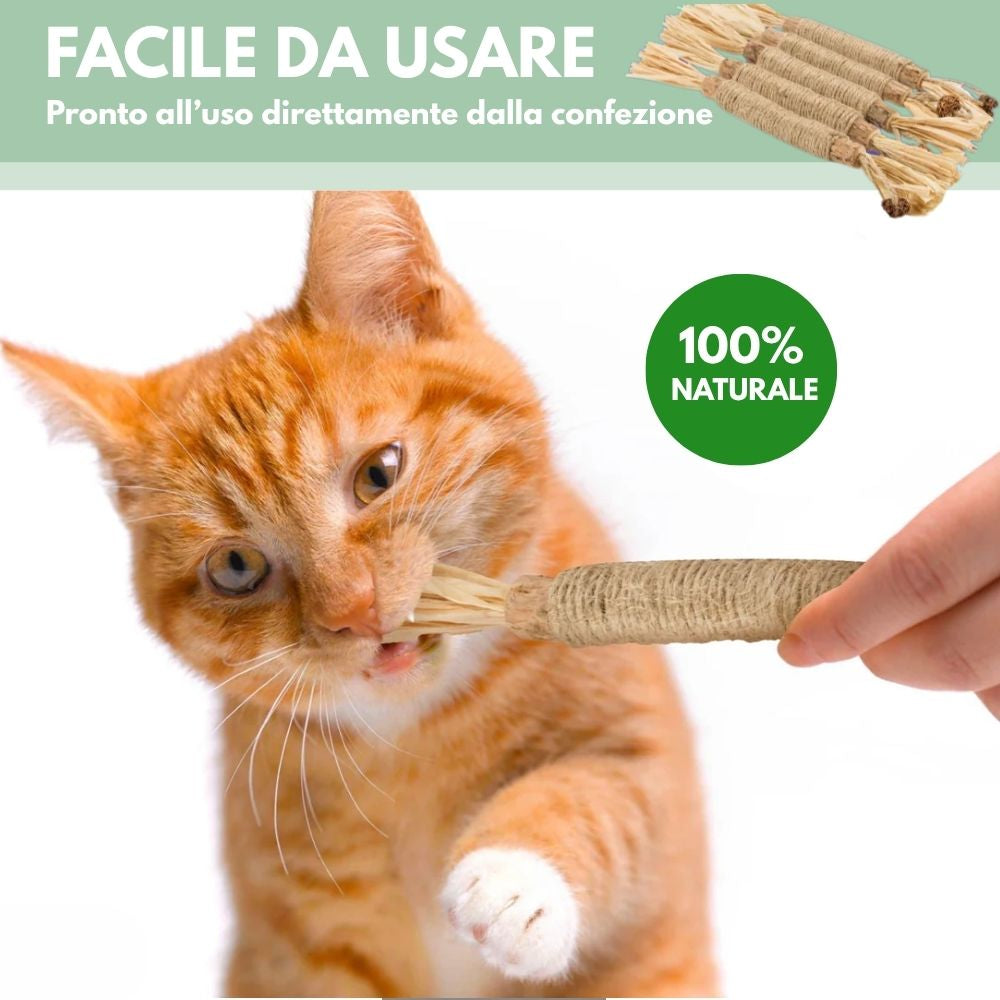 "Nel mio studio raccomando DentaSticks come prevenzione naturale per i problemi dentali. La silvervine è una pianta a cui oltre l'80% dei gatti risponde, a differenza dell'erba gatta dove risponde solo il 30-50%. I gatti puliscono naturalmente i loro denti masticando mentre giocano."